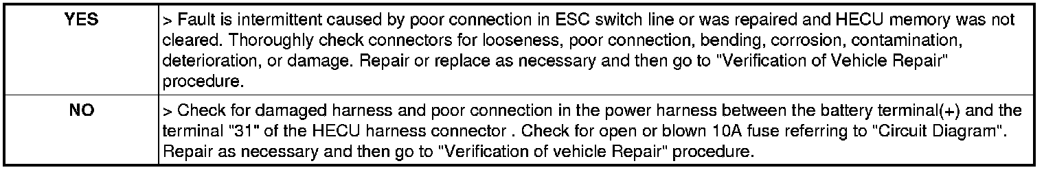 2. Measure voltage between terminal "31" of the HECU harness connector and chassis ground.
