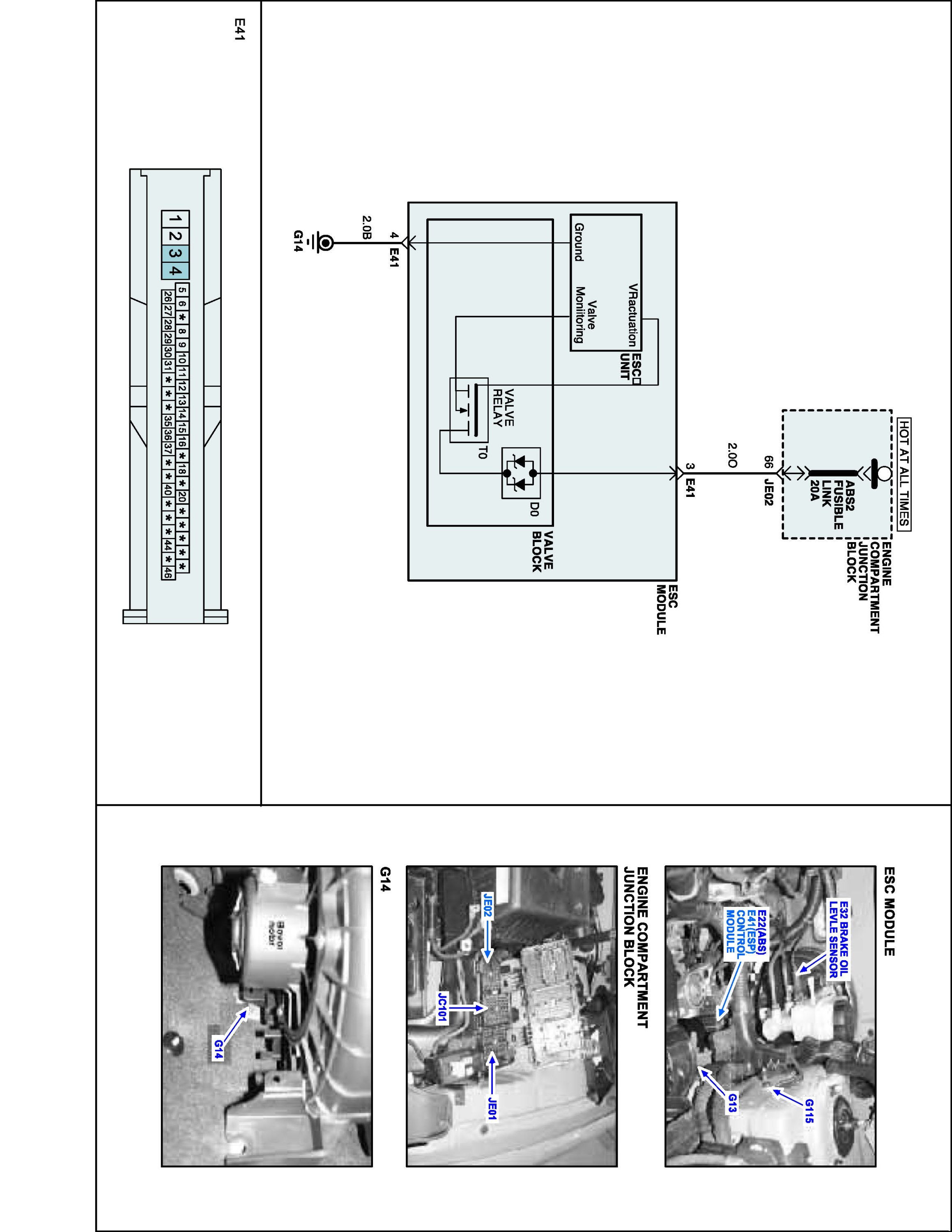 The HECU monitors voltage of the valve relay to check if the HECU can perform ABS control normally. When the valve relay is switched to ON, the HECU will set this code if the solenoid drive voltage is below permissible voltage ranges for a period of time. When the valve relay is switched to OFF, the HECU sets this code if the solenoid drive voltage is over the permissible voltage range for a period of time.