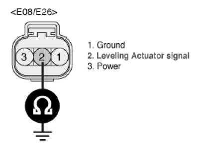 (3) Measure resistance between terminal "2" of the ECM (or leveling actuator) harness connector and chassis ground