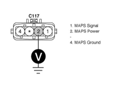 4. Measure the voltage between terminal 1 of MAPS harness connector and ground.
