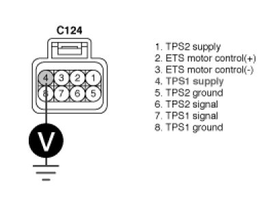 3. Measure voltage between terminal 4 of TPS harness connector and chassis ground.