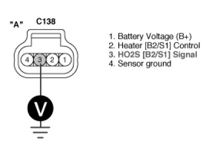 2. Measure voltage between terminal 3 of HO2S (B2/S1) harness connector and chassis ground.