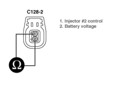 (2) Measure resistance between terminals 1 and 2 of injector connector. (Component side)