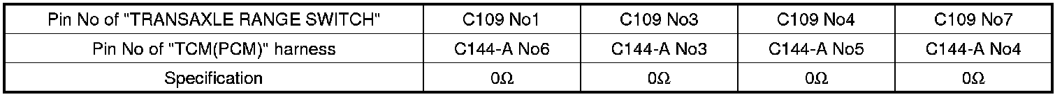 3. Measure resistance between each terminal of sensor harness connector and TCM (PCM) harness connector as below.