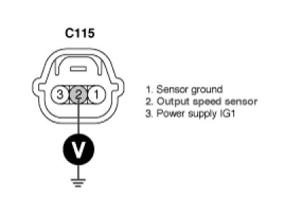 3. Measure voltage between terminal "2" of the OUTPUT SPEED SENSOR harness connector and chassis ground.