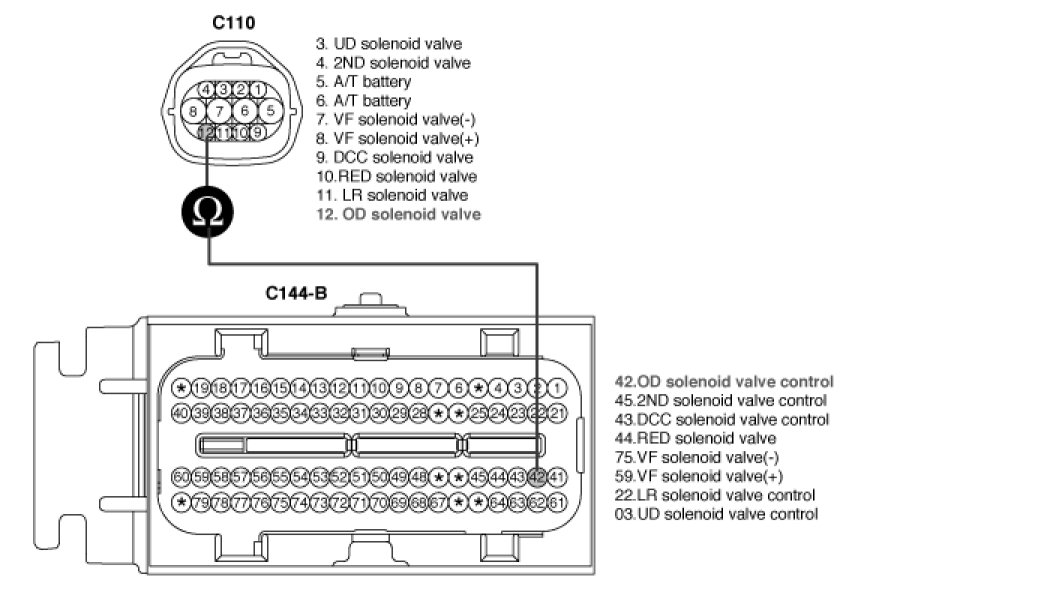 1. Disconnect "A/T SOLENOID VALVE" connector.