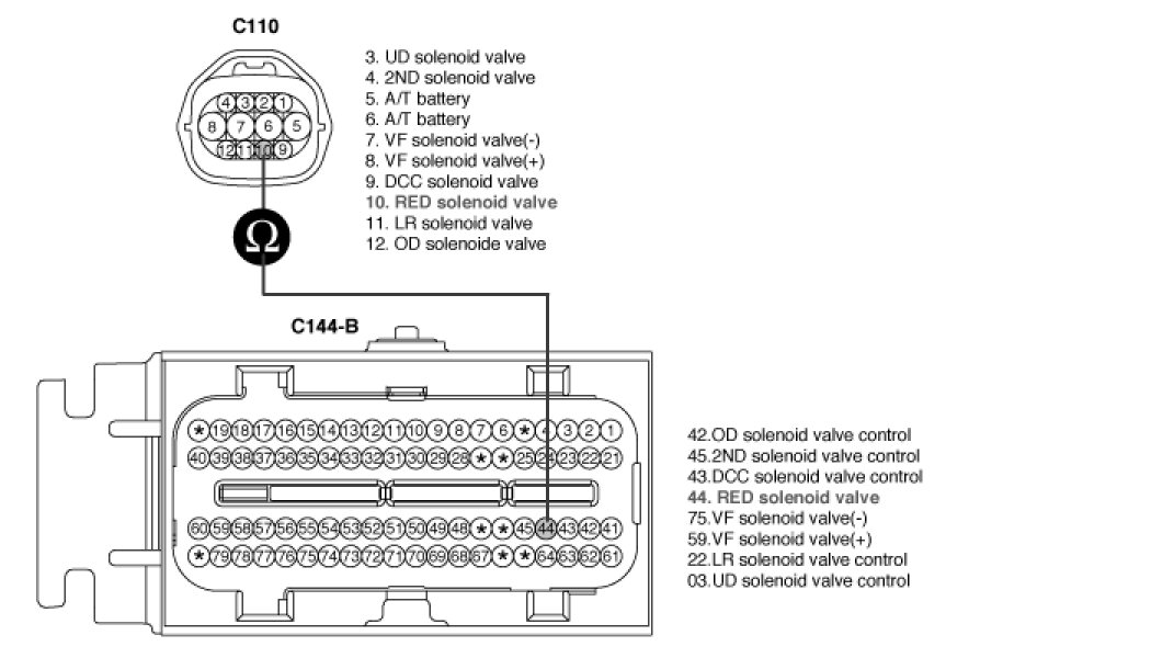 1. Disconnect "A/T SOLENOID VALVE" connector.