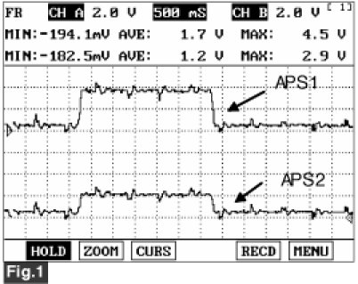 fig 1) This is a signal waveform of APS 1 & 2 while shows that the APS 2 increases voltage just half of APS 1 voltage increase then acceleration.