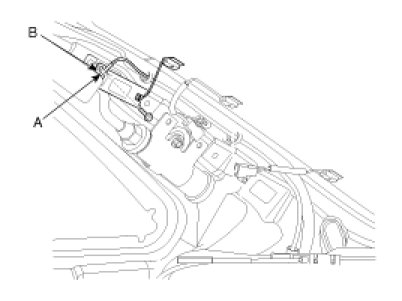 5. Check the continuity between terminals of harness side connector (B) and antenna grid AM/FM terminals (A).