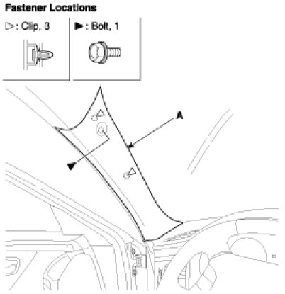 1. Remove the front pillar trim (A).