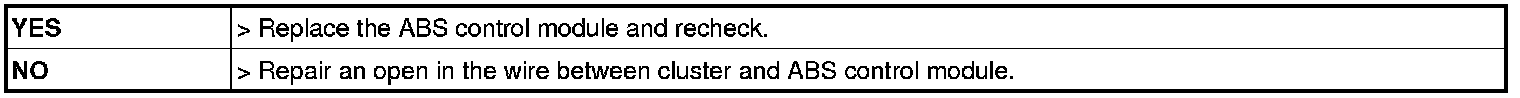 1. Check for continuity in the wire between cluster and ABS control module.