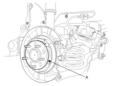 6. Install the rear axle hub(A) and the brake disk .