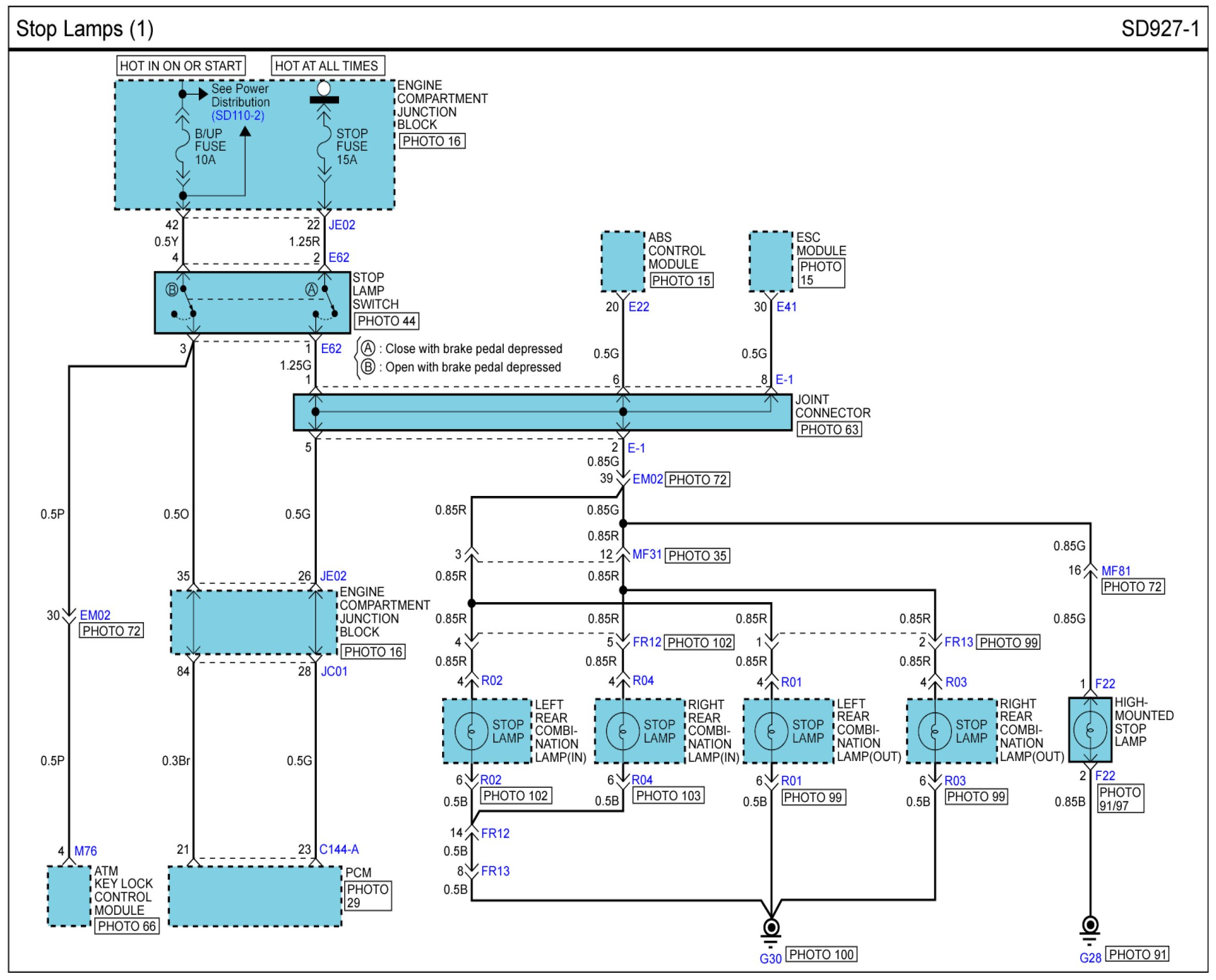 Locations: Location photographs (references to PHOTOS) referred to within these diagrams can be found via the photo number at the vehicle level under Locations by Photo Number. Component Locations