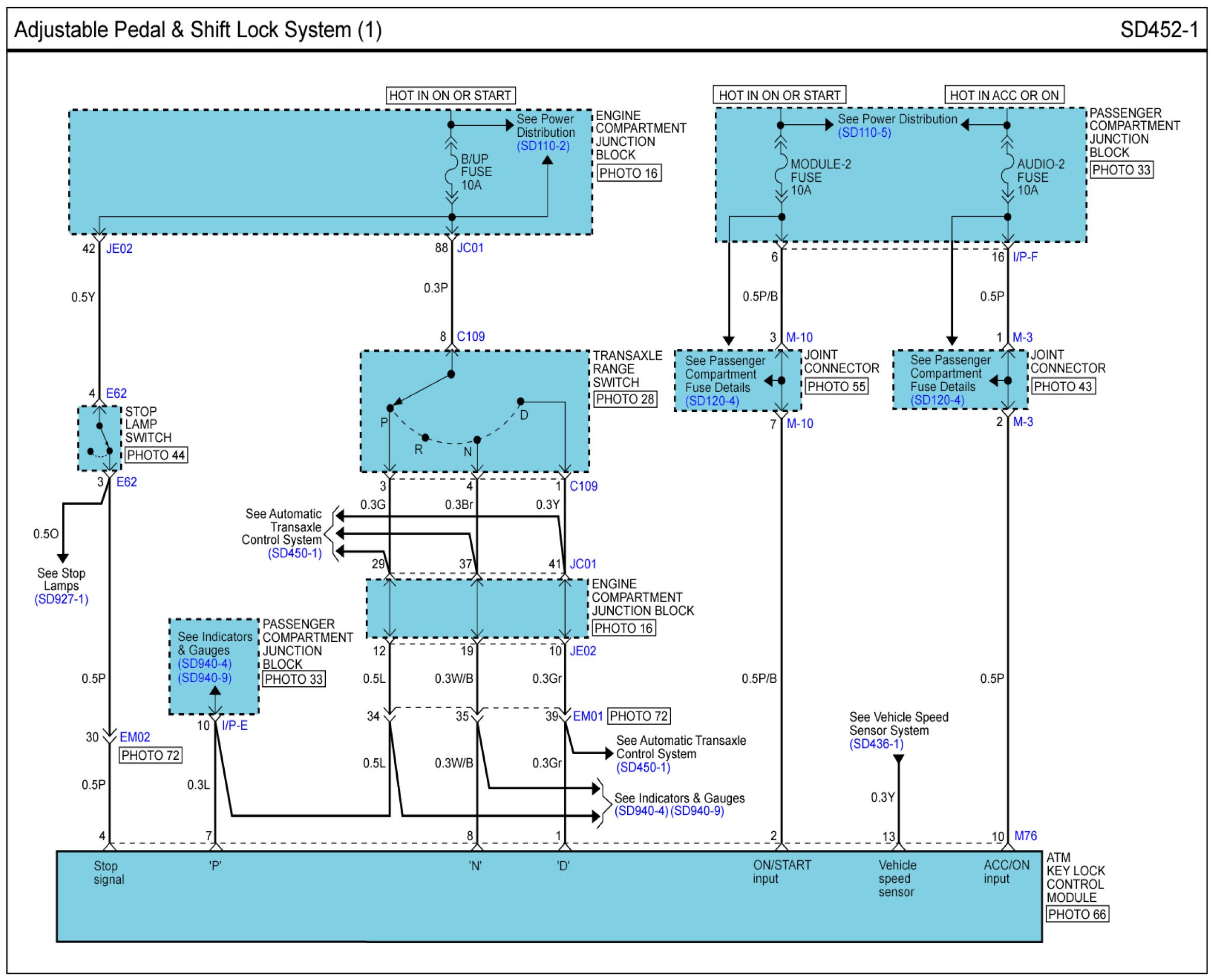 Adjustable Pedal & Shift Lock System Connector Pin Outs: