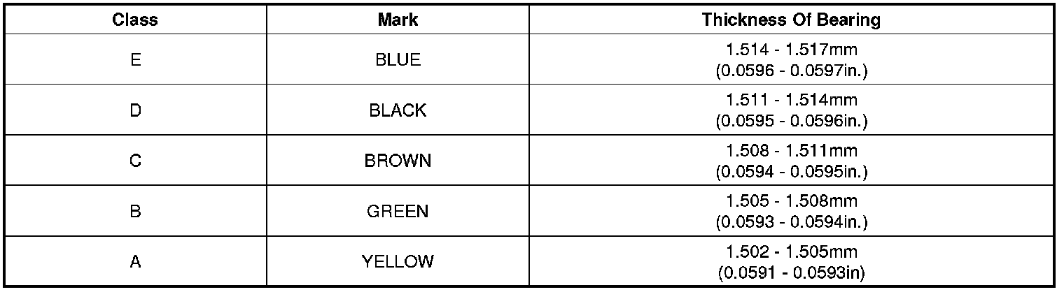 (7) If the plastigage shows the clearance is still incorrect, try the next larger or smaller bearing (the color listed above or below that one), and check clearance again.