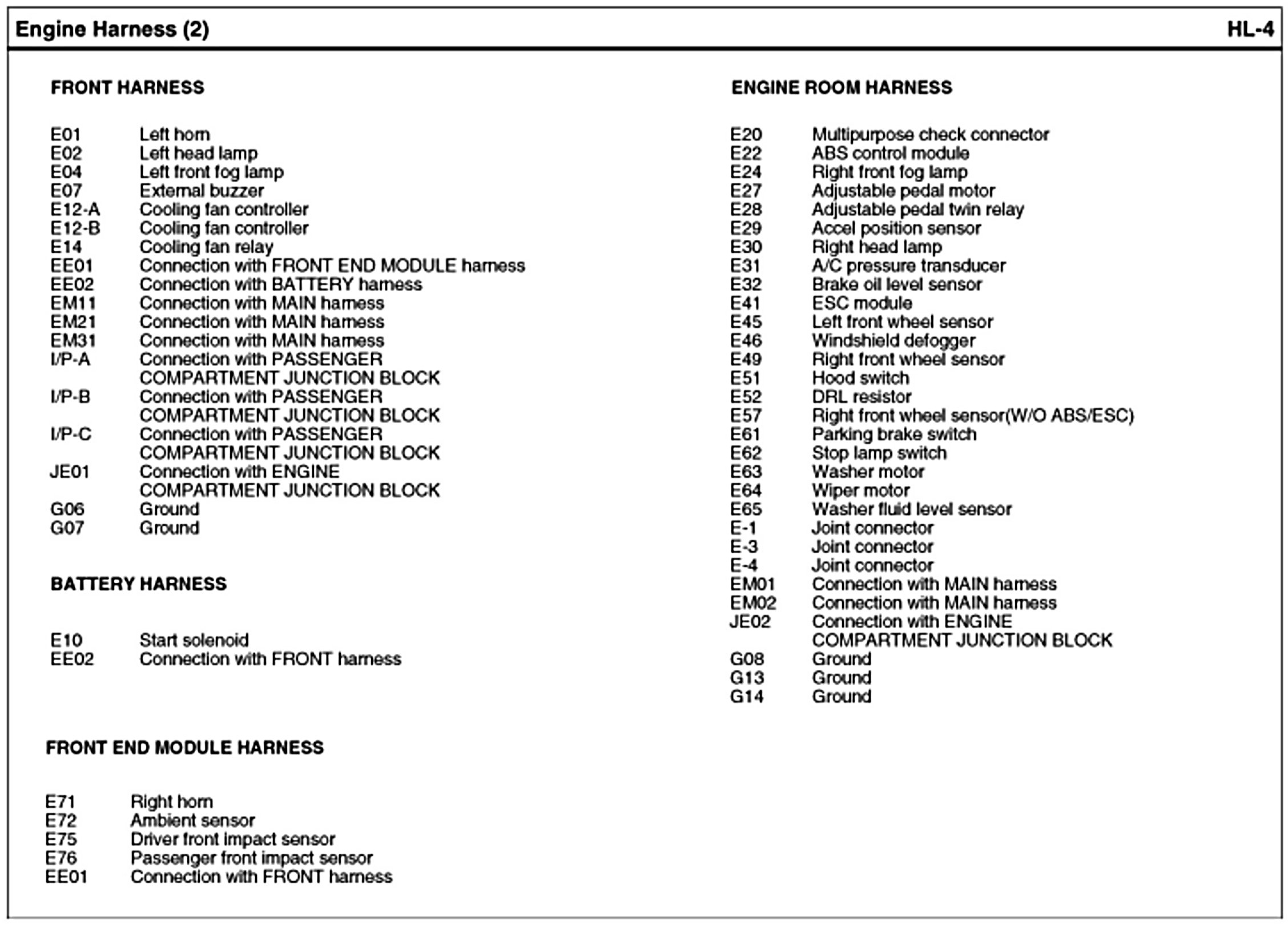 Engine Harness Index: