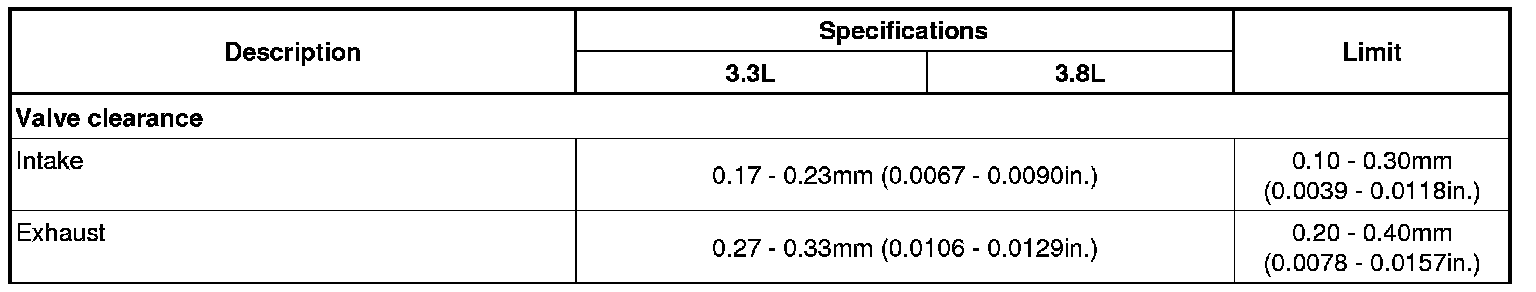 Exhaust 0.27 - 0.33 mm (0.0106 - 0.0129 in.)