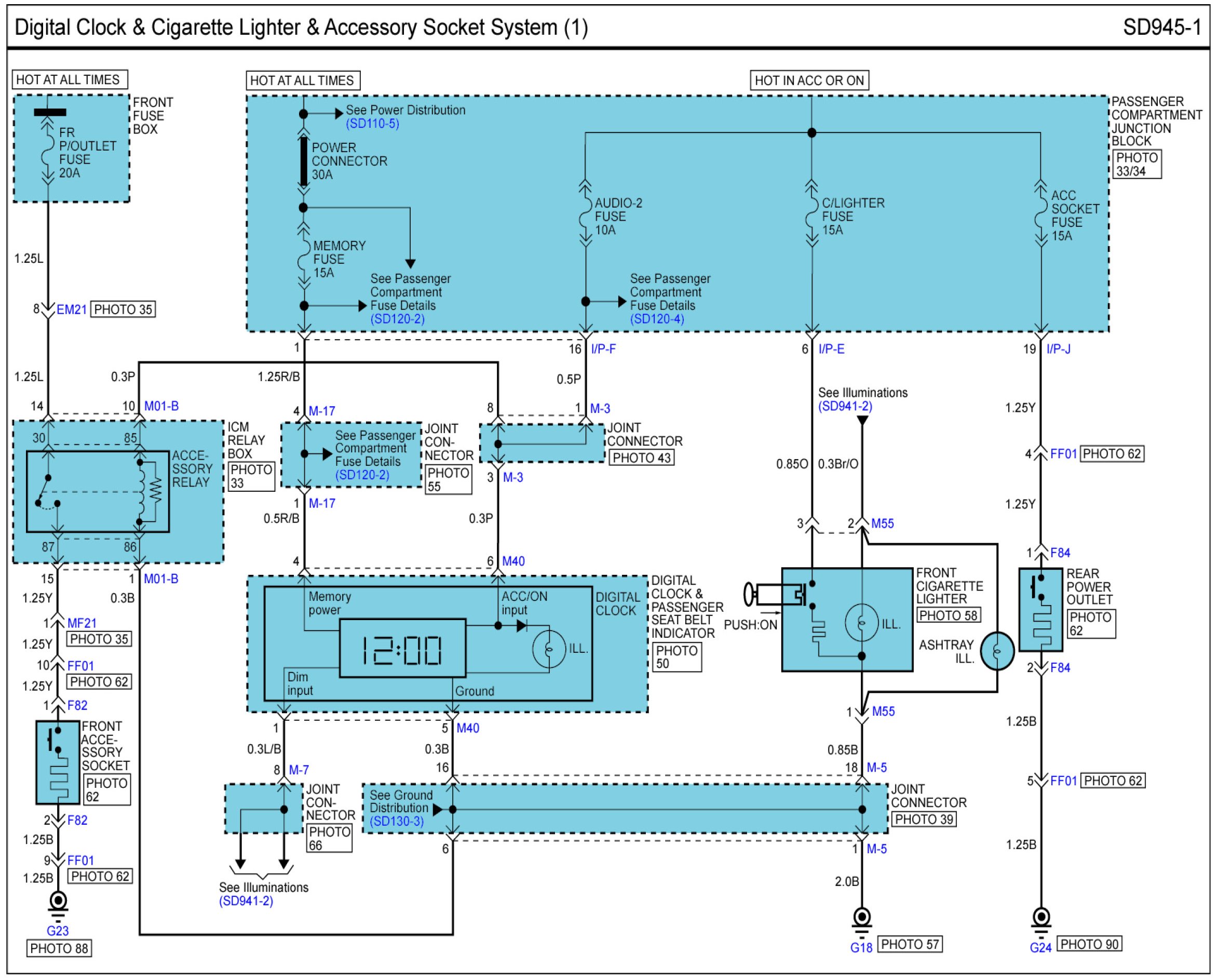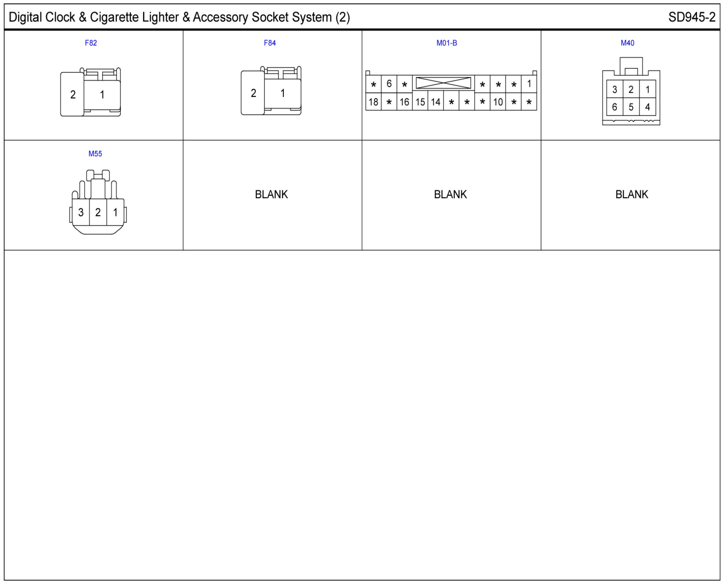 Digital Clock & Cigarette Lighter & Accessory Socket System Connector Pin Outs: