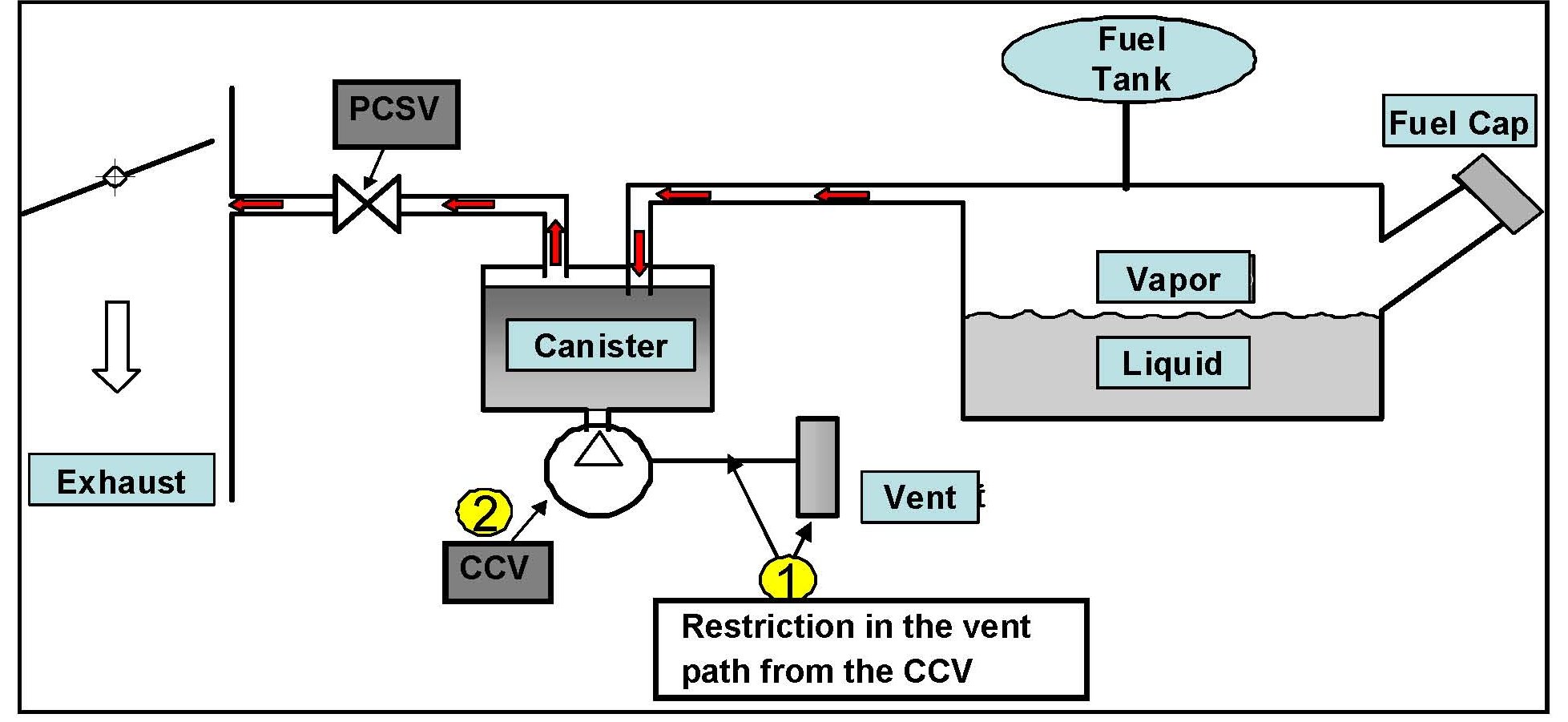 ^ The first check performed is to confirm if the PCSV is closing completely or is leaking vacuum. Resulting DTC is P0441 (Purge Flow Incorrect).