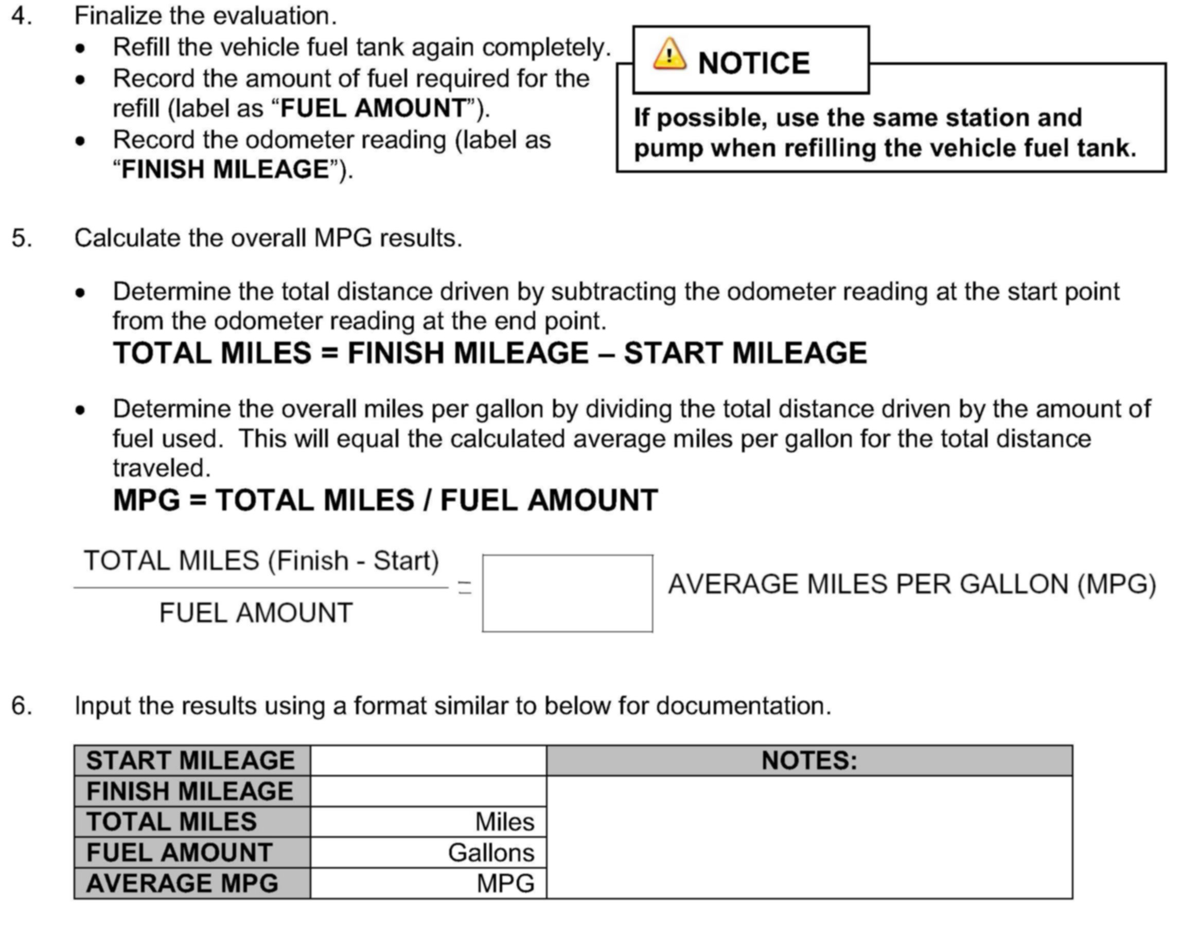 The following information and procedure is provided to assist in evaluating fuel consumption and documenting the results.