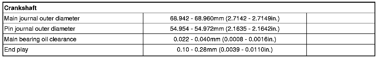 Main journal diameter 68.942 - 68.960 mm (2.7142 - 2.7149 in.)