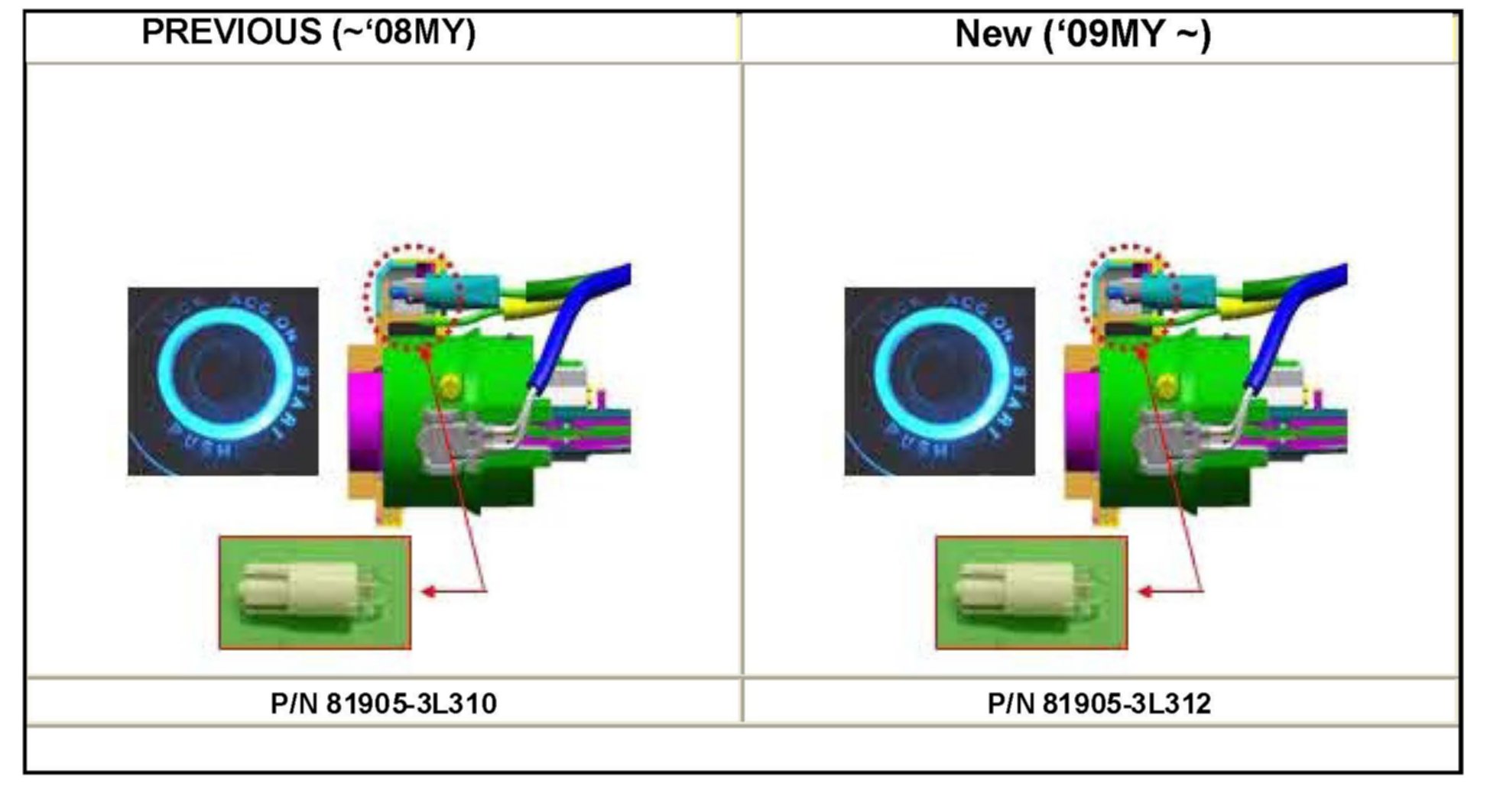 2009 AZERA (TG) IGNITION KEY SWITCH ILLUMINATION COLOR CHANGE