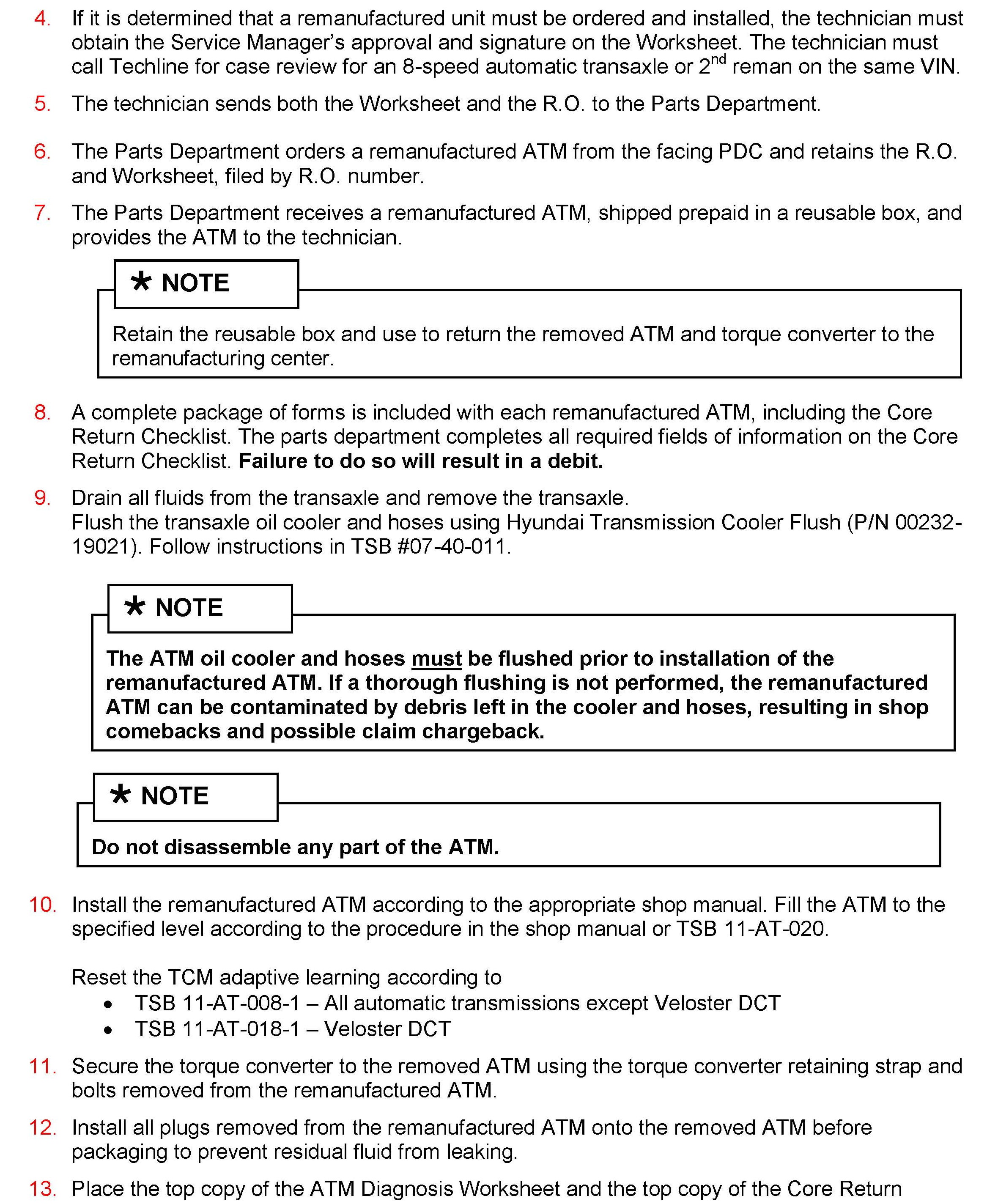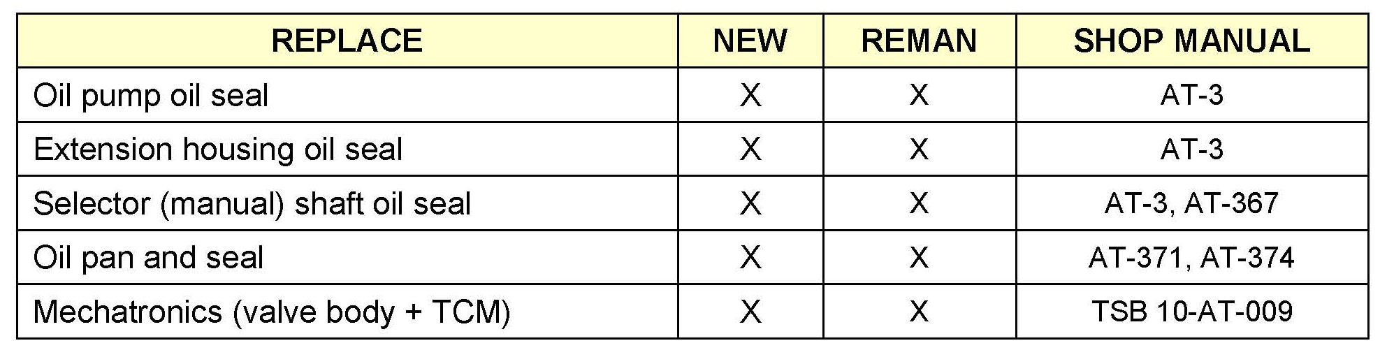 The ATM Diagnosis and Certification Course (# SVCAT28) provides detailed instructions on how to properly diagnose and when to repair or replace an ATM. DPSM approval is necessary when installing remanufactured transaxles if your dealership does not currently employ a technician who has completed this course.