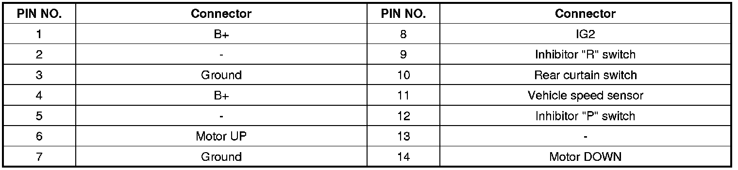 Rear Curtain Connector Pin Outs: