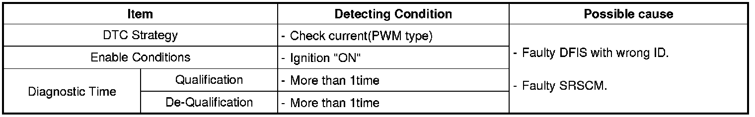 The SRSCM sets DTC B1330 if DFIS with wrong ID is detected