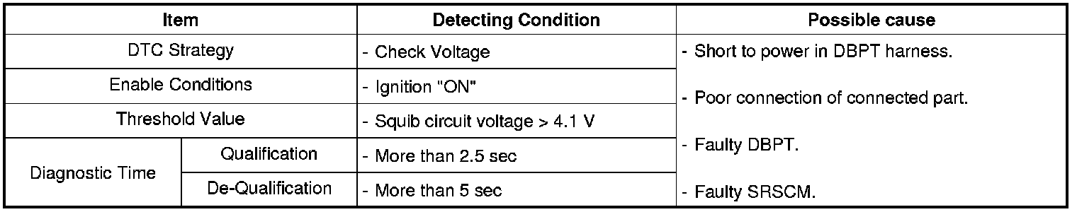 The SRSCM sets DTC B1364 if there is a short to power in DBPT harness.