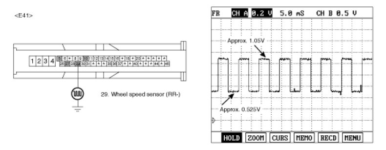 4. Measure wave between terminal "29" of the HECU harness connector and chassis ground.