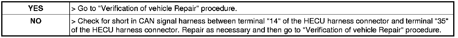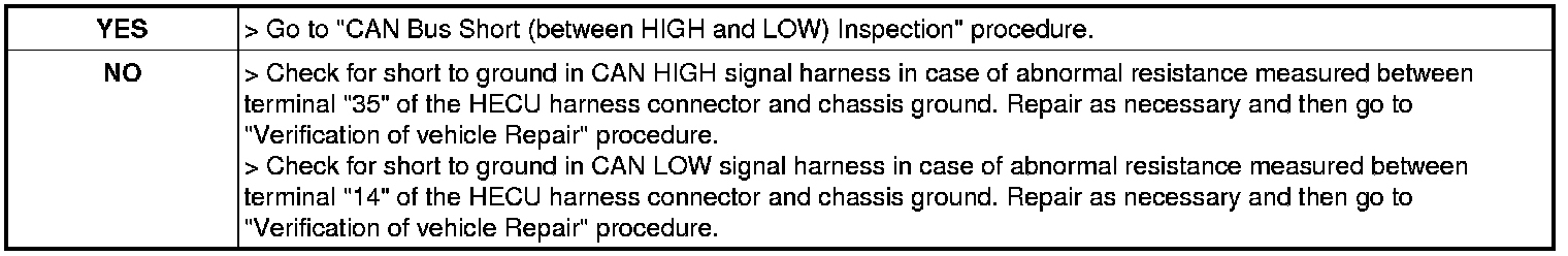 3. Measure resistance between terminal "14" of the HECU harness connector and terminal "35" of the HECU harness connector.