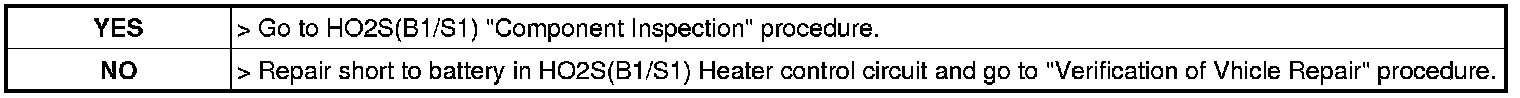 3. Measure voltage between terminal 1 of HO2S (B1/S1) harness connector and chassis ground.