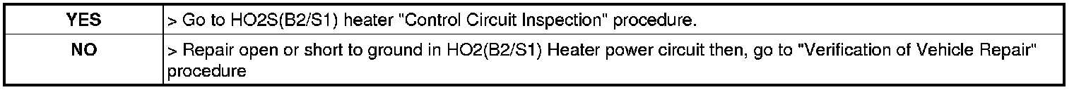 3. Measure voltage between terminal 1 of HO2S (B2/S1) harness connector and chassis ground.