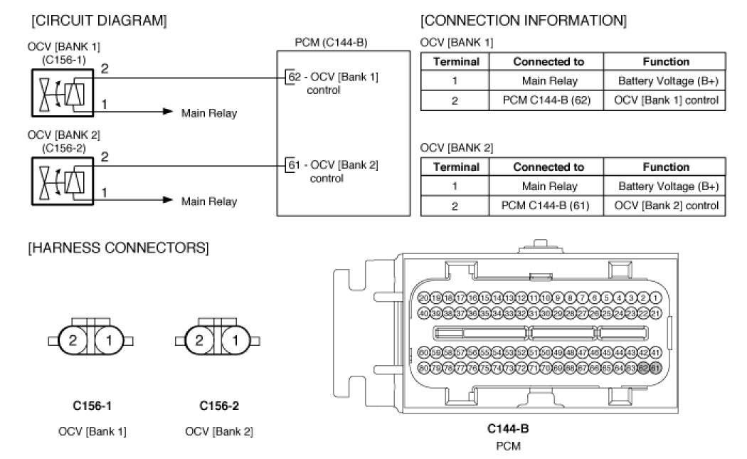 When the enable condition is satisfied, the PCM checks that OCV outputs (Voltage level) are observed when OCVs are commanded. When a OCV output failure is detected, the appropriate fail counter is incremented.