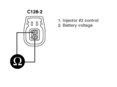(2) Measure resistance between terminals 1 and 2 of injector connector. (Component side)