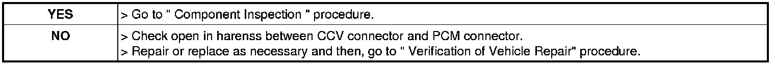 (3) Measure resistance between terminal "1" of CCV harness connector and chassis ground.