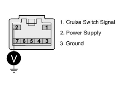 3. Measure voltage between terminal 2 of auto cruise switch harness connector and chassis ground.