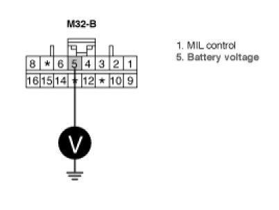 3. Measure voltage between terminal 5 of instrument cluster harness connector and chassis ground.