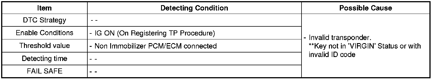The ECM sets DTC P1674 if transponder key that can't be register (TP not in the password mode or whose transport data has been changed) is inserted for registration procedure.