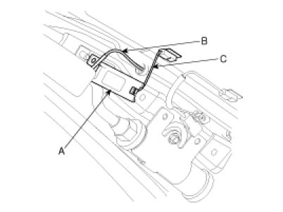 2. Remove the glass antenna radio amplifier (A) - Left/Right each 1 ea- after removing radio feeder cable (B) and amplifier wiring (C) from the glass antenna radio amplifier (A).