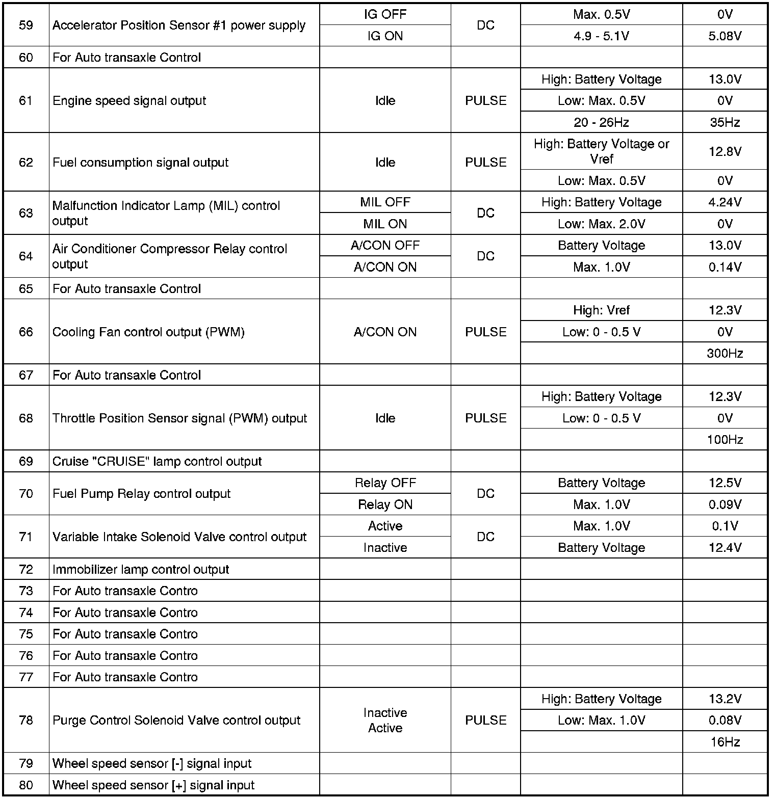 3. PCM Terminal Input/output Signal