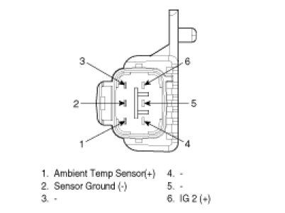 1. The ambient temperature sensor is located at the front of the condenser and detects ambient air temperature. It is a negative type thermistor; resistance will increase with lower temperature, and decrease with higher temperatures.
