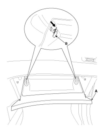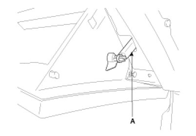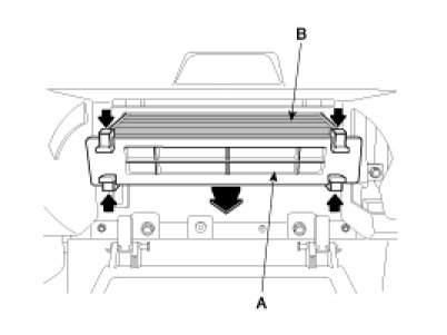 1. Open the glove box (B). Lower the glove box down completely by removing the glove box stopper (A) to the glove box.