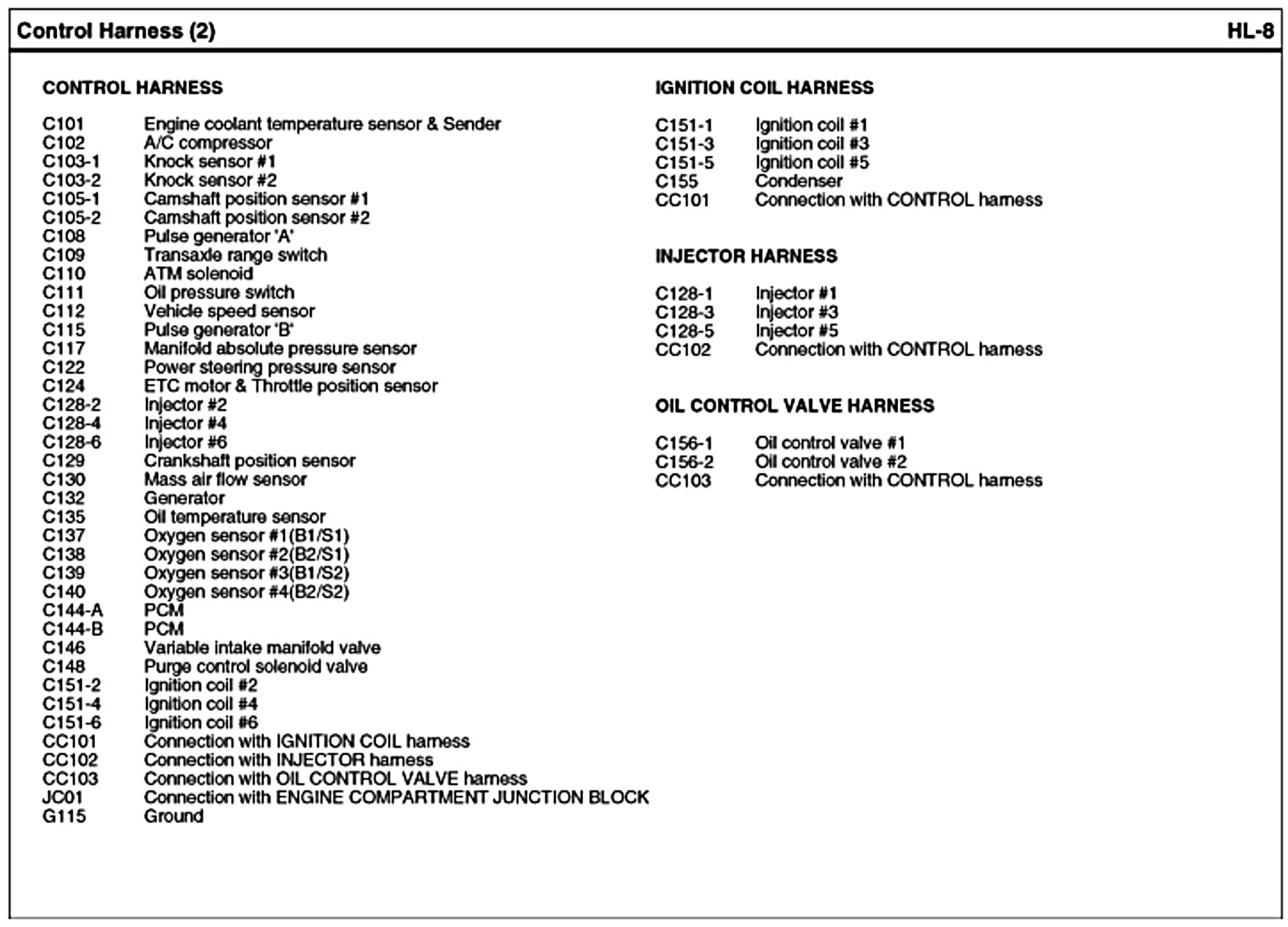 Control Harness Index: