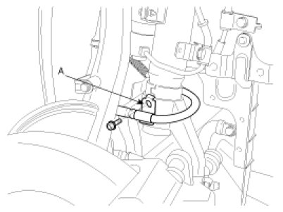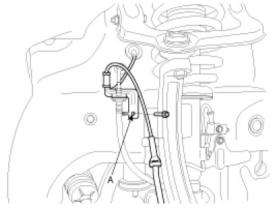 2. Disconnect the wheel speed sensor (A) from the knuckle.