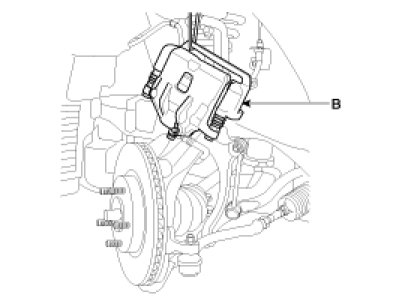 4. After loosening the bolts (A), remove the califer assembly (B) and suspend it with wire.