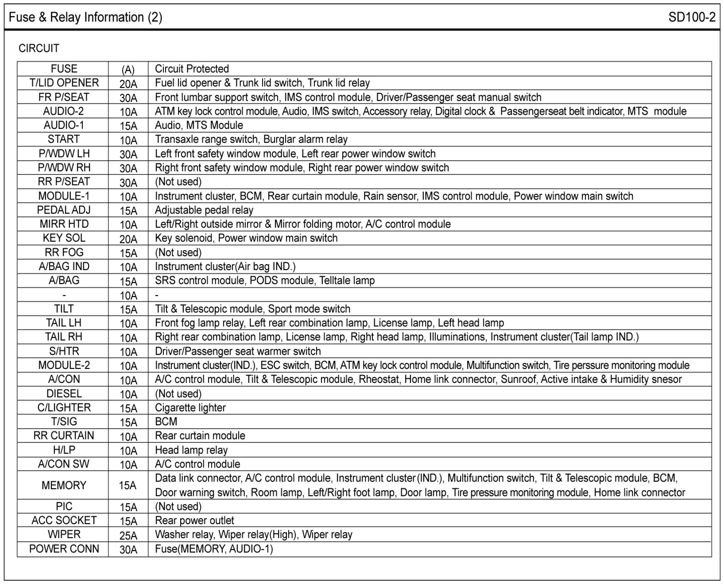Passenger Compartment Junction Block Layout Circuit Details:
