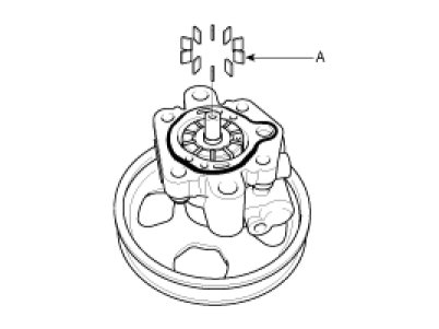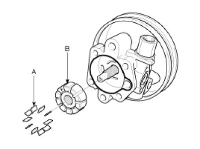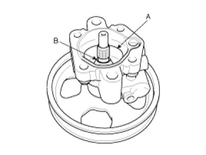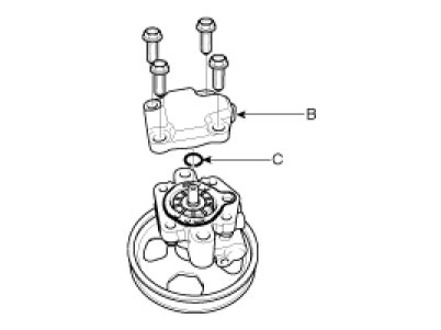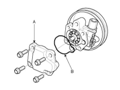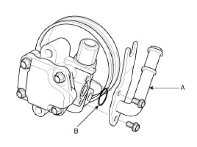 2. Remove the power steering oil pump rear cover (A) and the O-ring (B) by removing the four bolts.