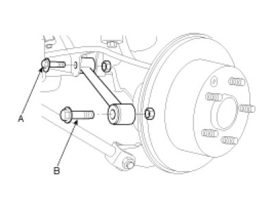 2. Install the assist arm mounting bolt(B) from the rear knuckle.